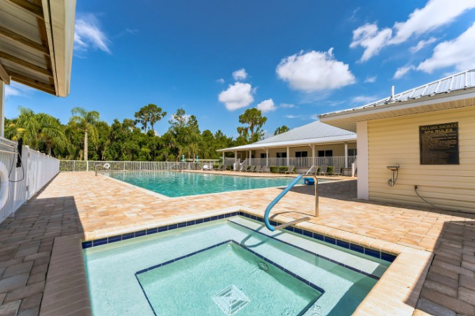 The clubhouse is the social hub of Walden Shores! From community events to casual get-togethers, their clubhouse offers a warm, inviting space to connect, relax, and celebrate. You can unwind under the Florida sun in their sparkling heated pool or soak away stress in the outdoor spa. Your daily escape just steps from home. Serve up some fun on their tennis and pickleball courts or challenge friends to a game of shuffleboard. Fresh air and friendly competition await!